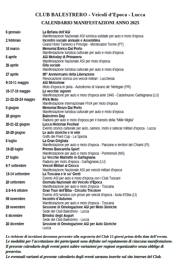 Di seguito è possibile consultare il programma 2025 delle manifestazioni del Club Balestrero