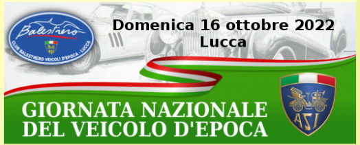 In occasione della Giornata Nazionale ASI del Veicolo d'Epoca il Club Balestrero organizza un raduno a LuccaLa partecipazione è gratuita per i soci, a pagamento per i non soci Il programma è consultabile e scaricabile quiLa scheda di iscrizione è scaricabile qui